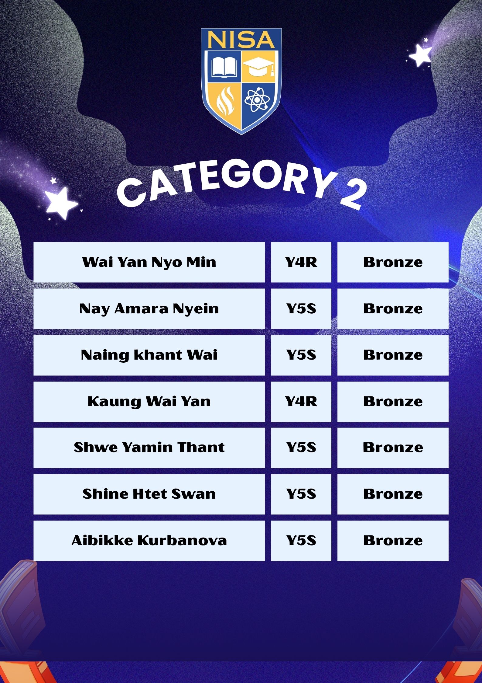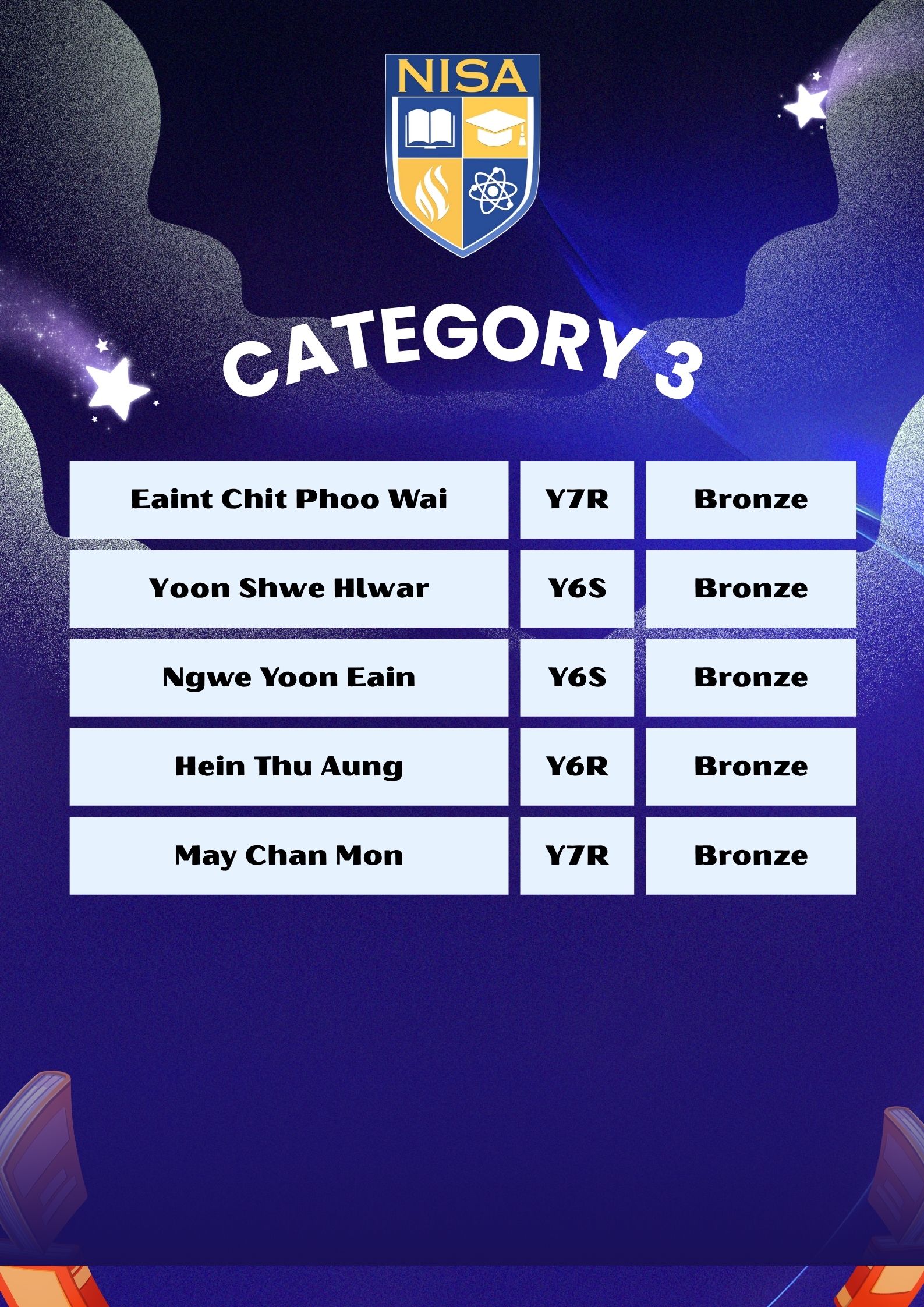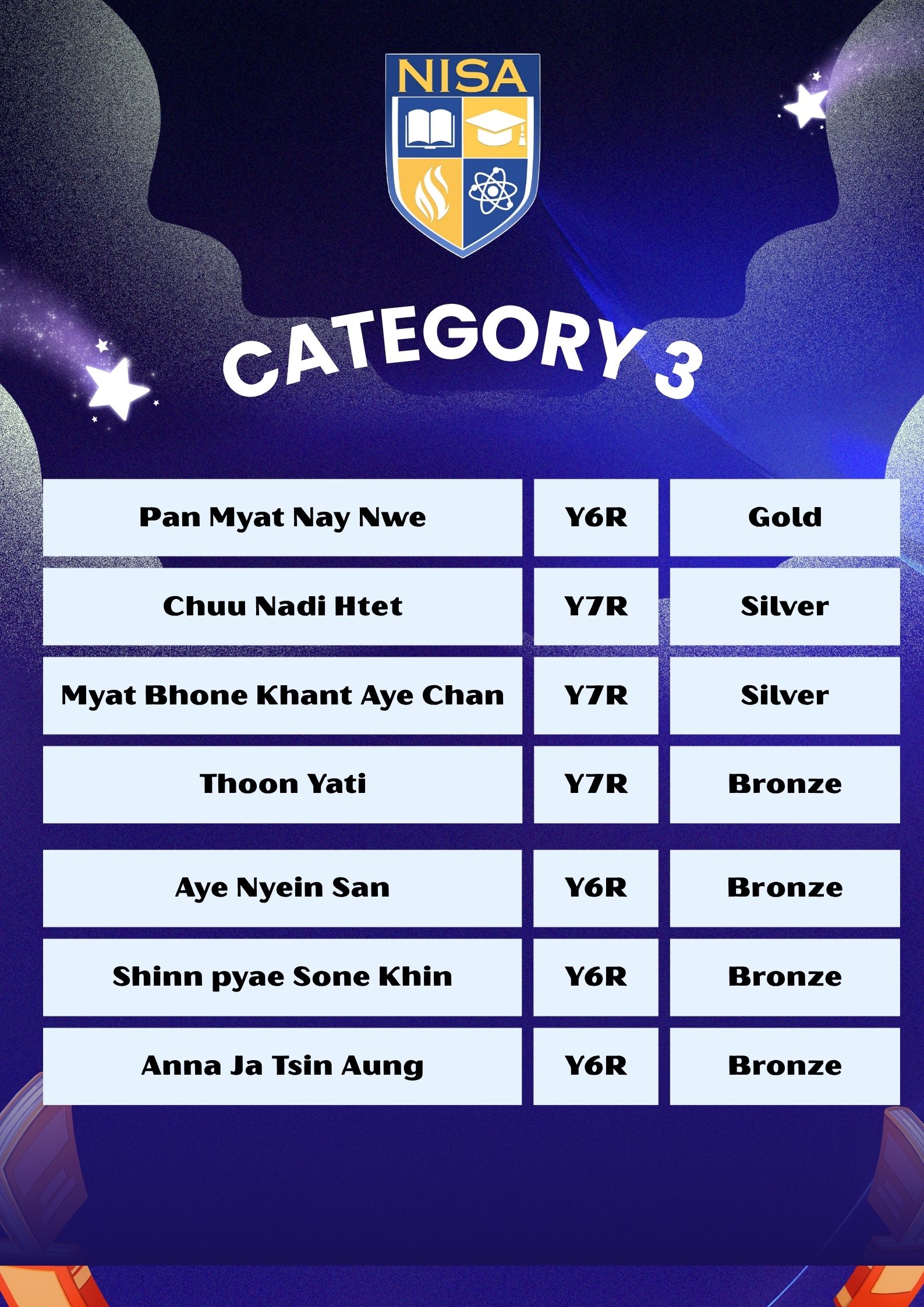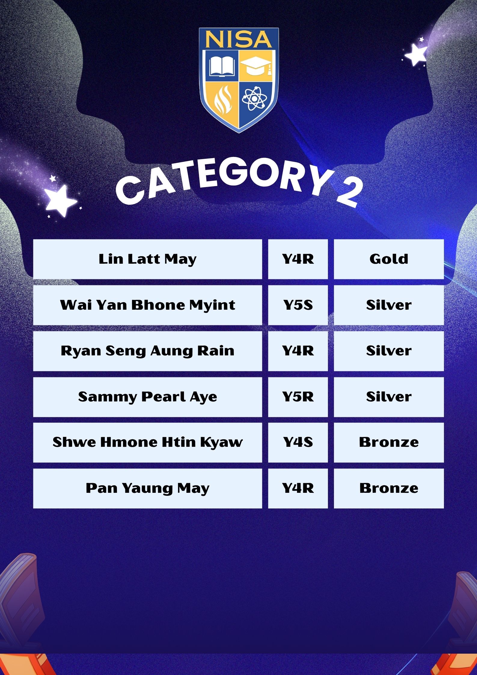 On 27th September, thousands of students from across Myanmar participated in the prestigious Edunova Reading Masters 2025. We are proud to share the names of the awardees and medalists from NISA for each category. Awarding will take place next Friday. Congratulations to you all and keep on reading!